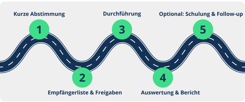 Wir simulieren einen realistischen Phishing-Angriff, analysieren das Verhalten Ihrer Mitarbeitenden und zeigen Ihnen klar auf, wo Ihr Unternehmen steht und wie Sie Ihre Sicherheitskultur gezielt verbessern.